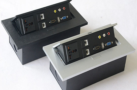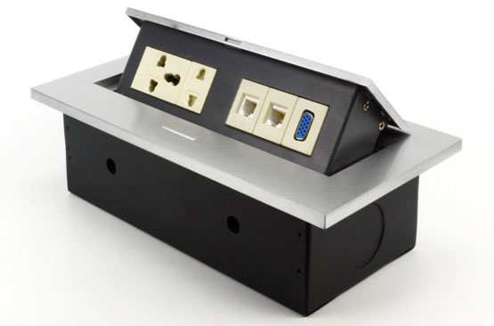 產品名稱:手動翻轉桌面插座產品型號:C01-Z505產品顏色:閃銀、磨砂黑產品尺寸:406*110*103mm開孔尺寸:374*104mm材 質:鋁合金、塑膠配 置:開關、2個三級電源、2個網絡···
