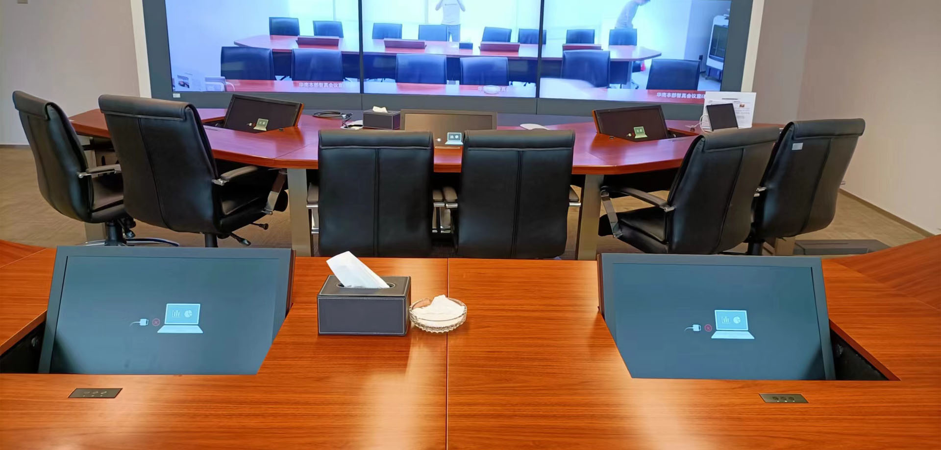 液晶升降器是計算機液晶顯示器,當不在桌面上時,需要使用顯示器,隱藏在會議桌內從電梯到會議桌下方的桌面;當不使用顯示器時,電···